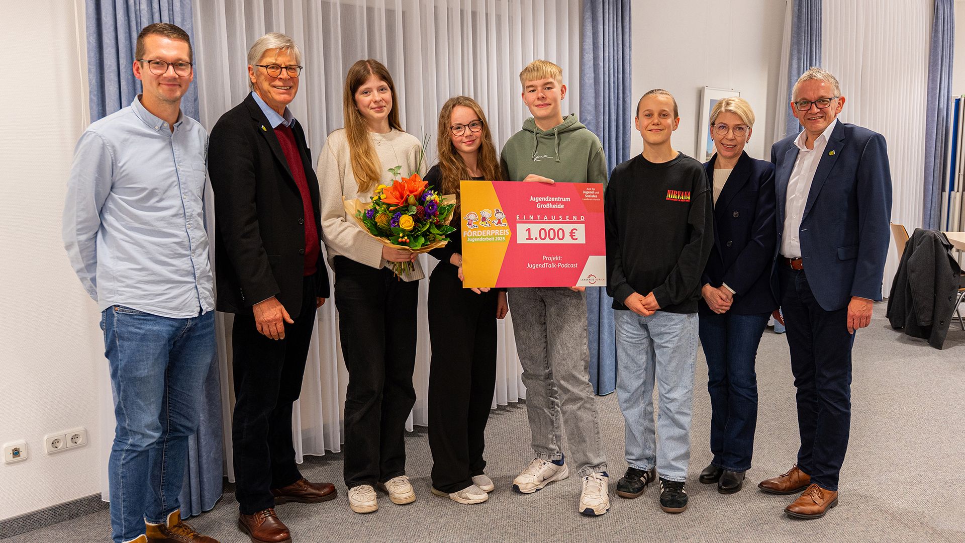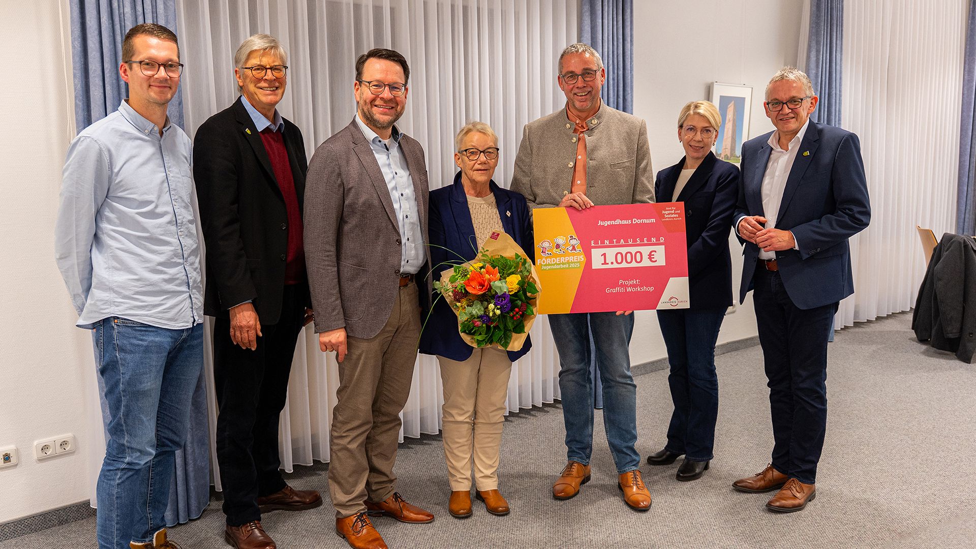 Die Jugendarbeit genießt im Landkreis Aurich seit vielen Jahren einen herausragenden Stellenwert. Um besonderes Engagement sichtbar zu machen und innovative Ideen zu fördern, vergibt das Amt für Jugend und Soziales seit 2016 den Förderpreis für gute Jugendarbeit. Der Preis ist mit insgesamt 3000 Euro dotiert und wurde in diesem Jahr mit jeweils 1000 Euro gleichmäßig auf die Gewinner verteilt. Eine Jury unter der Schirmherrschaft von Landrat Olaf Meinen, bestehend aus Vertreterinnen und Vertretern des Jugendhilfeausschusses sowie des Amtes für Jugend und Soziales entscheidet jährlich über die Vergabe. Das Preisgeld soll unmittelbar wieder der offenen und verbandlichen Jugendarbeit zugutekommen – etwa für neue Projekte, Anschaffungen oder gemeinsame Unternehmungen.