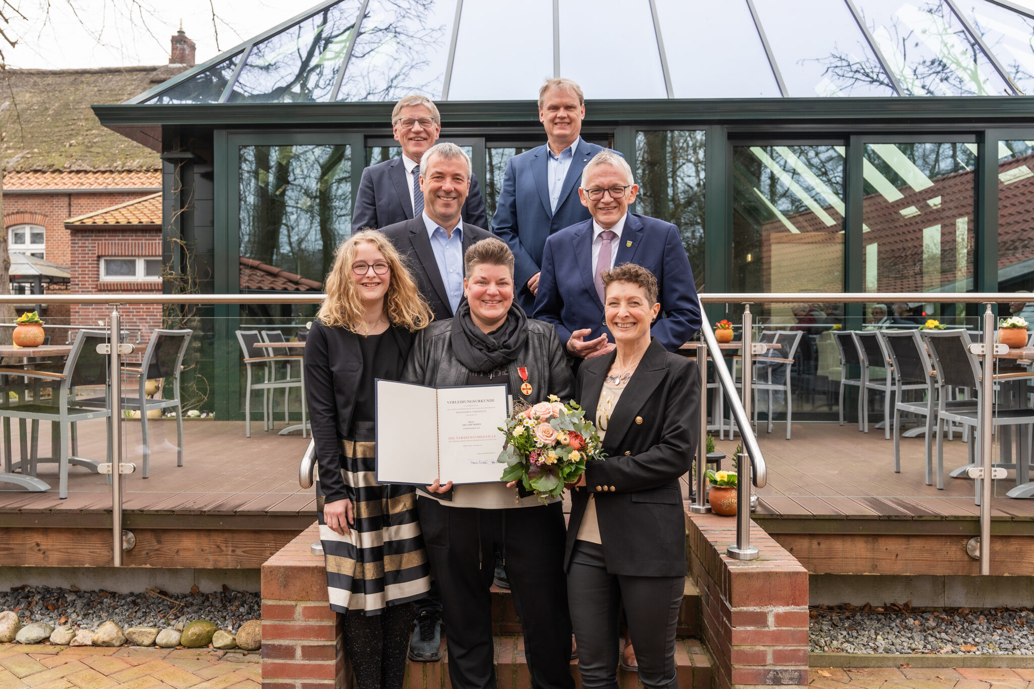 Melanie „Melly“ Doden aus Südbrookmerland ist am Sonnabend mit der Verdienstmedaille des Verdienstordens der Bundesrepublik Deutschland ausgezeichnet worden. Landrat Olaf Meinen überreichte die Auszeichnung im Namen des Bundespräsidenten und würdigte damit Dodens langjähriges und herausragendes Engagement gegen Diskriminierung und Ausgrenzung sowie für Demokratie, Toleranz und die Rechte der Queer-Community.