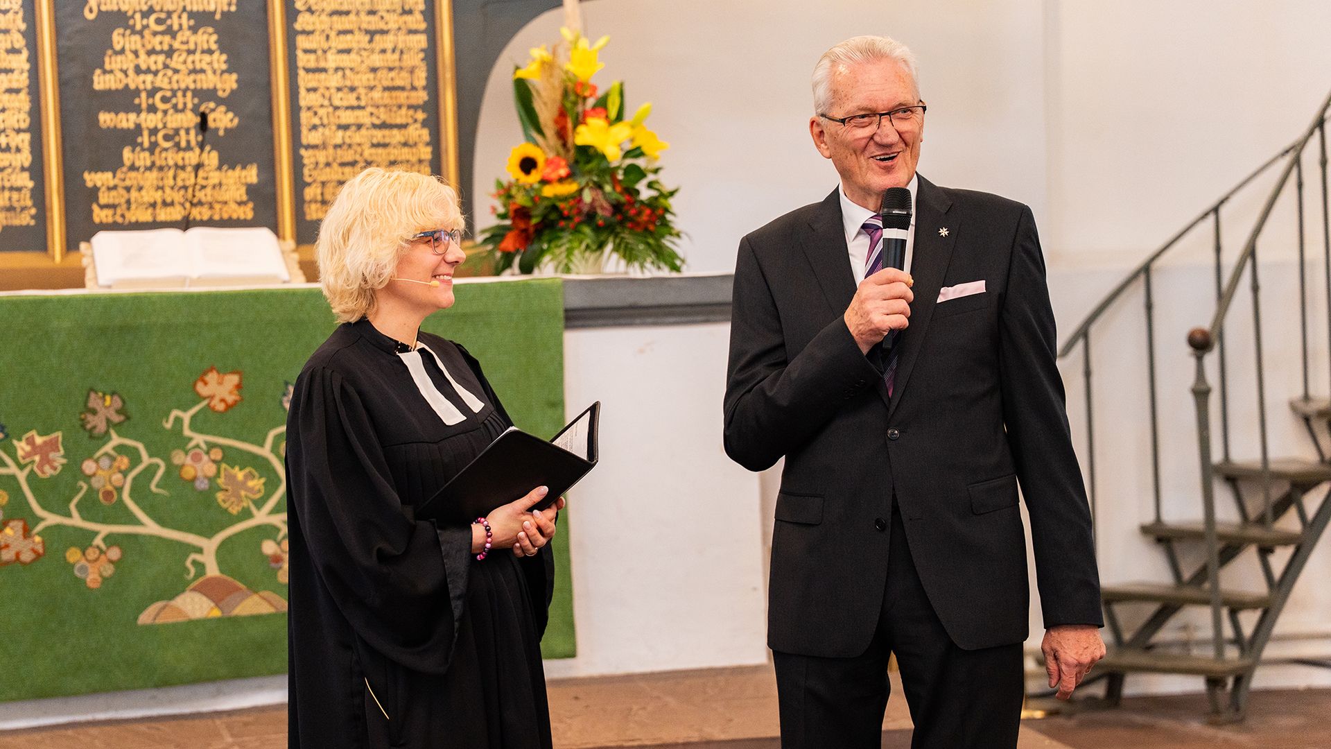 Mit einer feierlichen Zeremonie im Gemeindehaus der Lamberti-Kirchengemeinde in Aurich und einem vorhergehenden Gottesdienst in der Lambertikirche ist der Auricher Hans Hunfeld am Sonntag, 12. Oktober, mit der Verdienstmedaille des Verdienstordens der Bundesrepublik Deutschland ausgezeichnet worden. Landrat Olaf Meinen überreichte den Orden im Namen des Bundespräsidenten im Beisein zahlreicher Gäste aus Politik, Hilfsorganisationen und Ehrenamt.