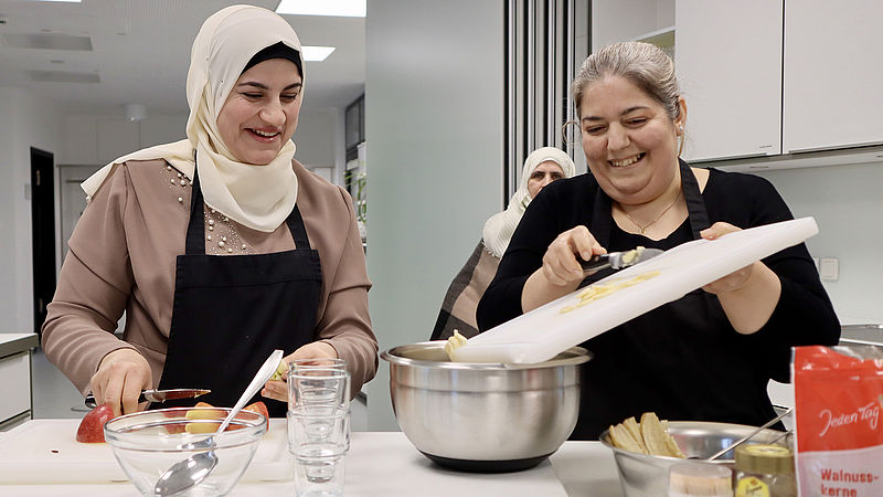 „Unser Ziel ist es, die Teilnehmerinnen in hauswirtschaftliche Dienstleistungsbetriebe zu vermitteln. Wir möchten den Frauen eine Perspektive geben. Außerdem werden die Sprachkenntnisse verbessert. Unsere Frauen kommen aus Syrien, dem Libanon, Armenien oder Russland, aber einen Dolmetscher brauchen wir hier nicht“, sagt Müller, Ausbildungsberaterin bei der Landwirtschaftskammer.